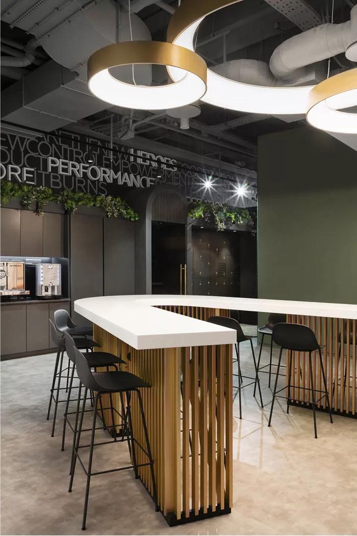 深圳裝飾公司設計概念的靈感來源于公司的名稱——L'or(法語,意為gold金色)和aurele(法語,意為halo光環(huán))。“金色光環(huán)”的品牌寓意成為整個空間形式的構(gòu)造背景,整個辦公室設計的主動線也圍繞著一個圓環(huán)來規(guī)劃。中心圓環(huán)被定義為一個明亮的核心空間,形成一個中心會議大廳,周邊分布著或開放或封閉的會議區(qū)。