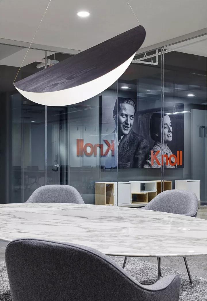 設計融入了經典的大理石石材、金屬銅、軟木、漂亮的飾品、以及所需的設計模式去支持和服務于銷售團隊,裝修公司在整個設計中以互補的形式集成在一起,營造出一種動感的組合形式,向設計師和客戶展示如何在不同品牌之間建起聯系的紐帶。展示設計展示了8×10的小型辦公室,這是現代辦公室裝修設計中常見的規格。同時,這里僅展示6×6的工作站,并運用同一產品去呈現多樣化的組合方式。這是一個重要的展示形式,深圳寫字樓裝修設計向客戶演示產品是如此靈活富于變化,去滿足各種形式的工作需求。