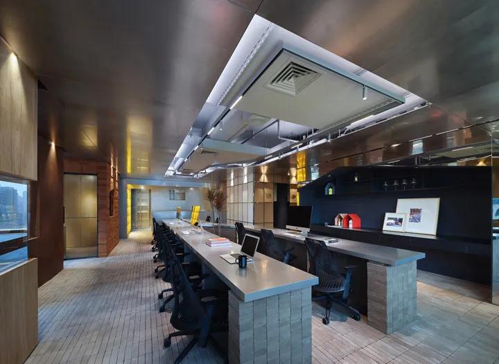 空間的各種可能性使生活和工作密不可分,并且一直在空間中實踐“生態(tài)時尚”的表達。這個大膽的想法是,深圳裝飾公司將在有限的高層建筑空間中創(chuàng)建一個自然而透明的“創(chuàng)意公園”,讓她有“空中建筑”的氣息。讓忙碌而擁擠的城市中的員工,在摩天大樓建造的鋼鐵森林中,不再感到寒冷和孤獨。讓這個充滿溫度和凝聚力的辦公空間,激發(fā)員工打破常規(guī),繼續(xù)創(chuàng)造想法;同時,這個辦公空間延續(xù)了上海的基因和上海的歷史魅力,讓過去和未來在這里碰撞,整個辦公室似乎都在截斷城市的半邊天。從景觀上看,不同高度的建筑物并且紋理散布在眼睛可以觸及的地方。屋頂,紅磚墻,窗戶,樹木這形成了一個新領域,一個隱藏在摩天大樓中的“創(chuàng)意公園”。走進辦公室就像沿著蜿蜒的小路慢慢進入街道公園,樹蔭籠罩,紅磚砌成的墻壁,小路,長椅,猶如撕開色彩斑sky的天空,并用它作為畫布欣賞被不同風格的建筑物包圍和高峰,他們似乎在過去和將來徘徊,并立即進入活躍的創(chuàng)意世界。