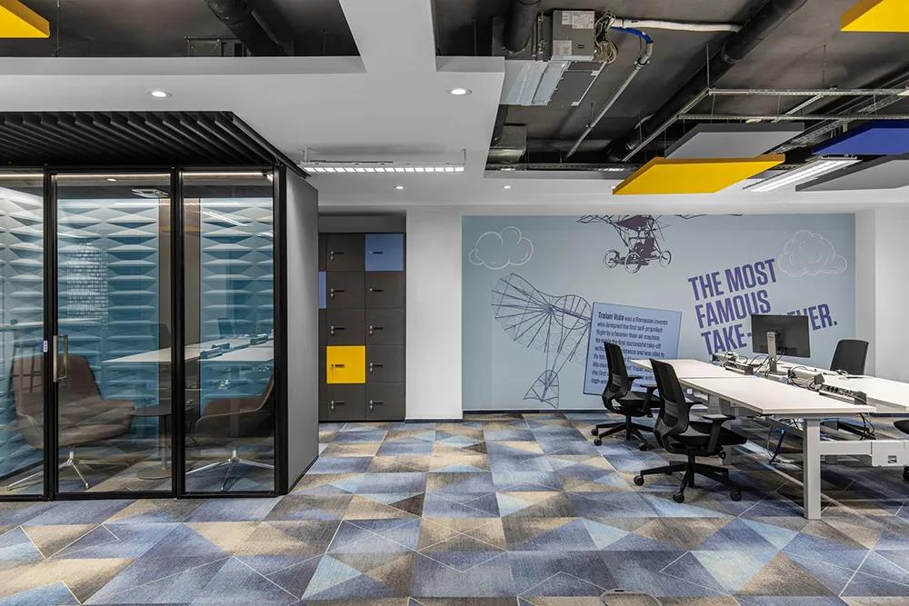 從建筑裝飾工程公司,深圳裝飾公司的設計團隊與裝飾公司合作,將科技辦公室打造成為一個動感、流暢、時尚、經(jīng)得起時間考驗的辦公空間。這個案例的設計挑戰(zhàn)是在開放空間中包含一個大型的合作區(qū)域,擁有 100 多個工作站,人們可以在那里進行交流和互動,您也可以專注于自己的工作。藍色來自企業(yè)色彩,與其他鮮艷的色彩相協(xié)調(diào),傳達出對公司發(fā)展中令人興奮的新機遇的開放感。